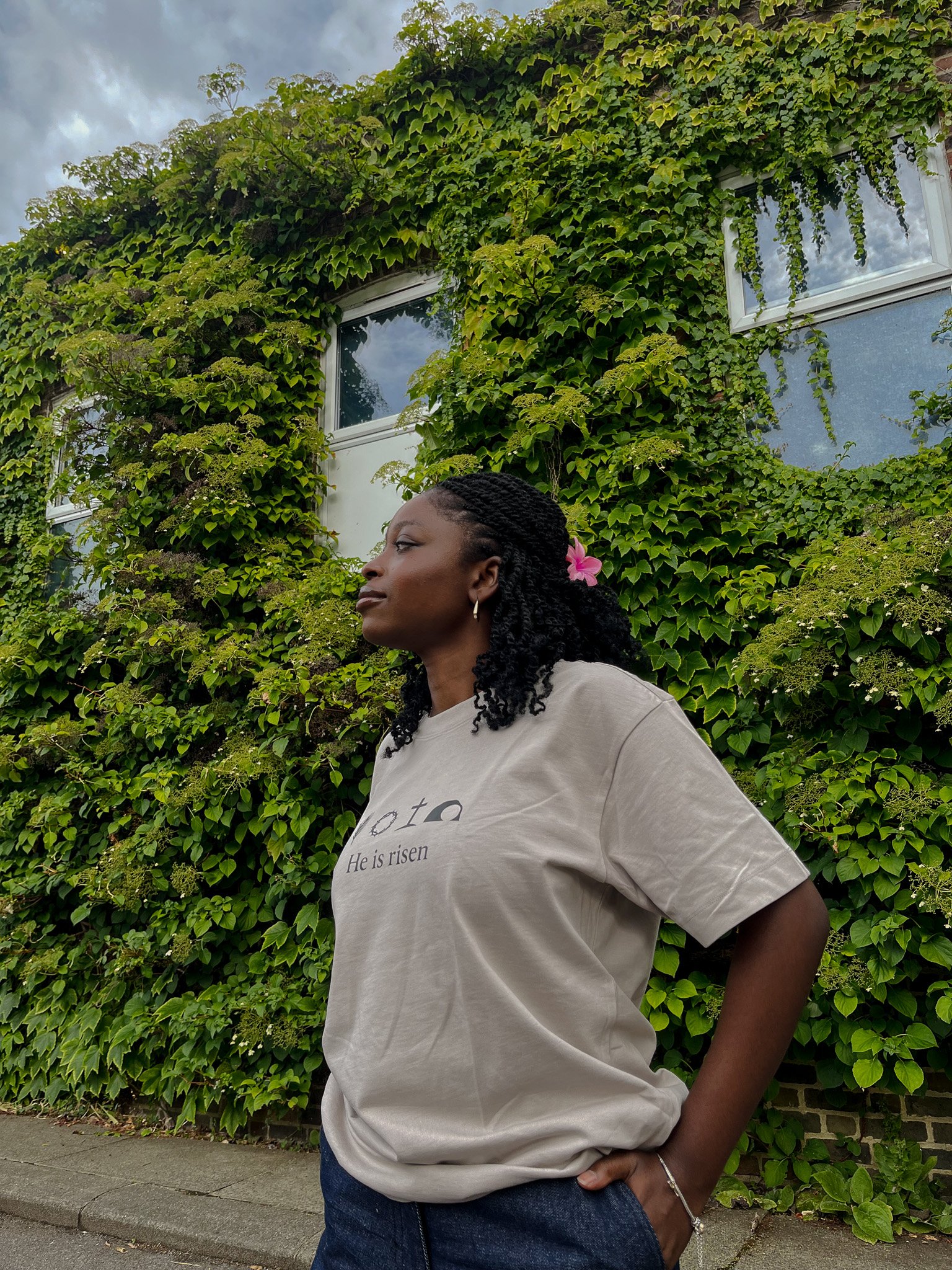 Featuring a minimalist front graphic built on the four symbols—Palm Branch, Cross, Crown of Thorns, and Empty Tomb—this tee is made to spark reflection without saying too much.